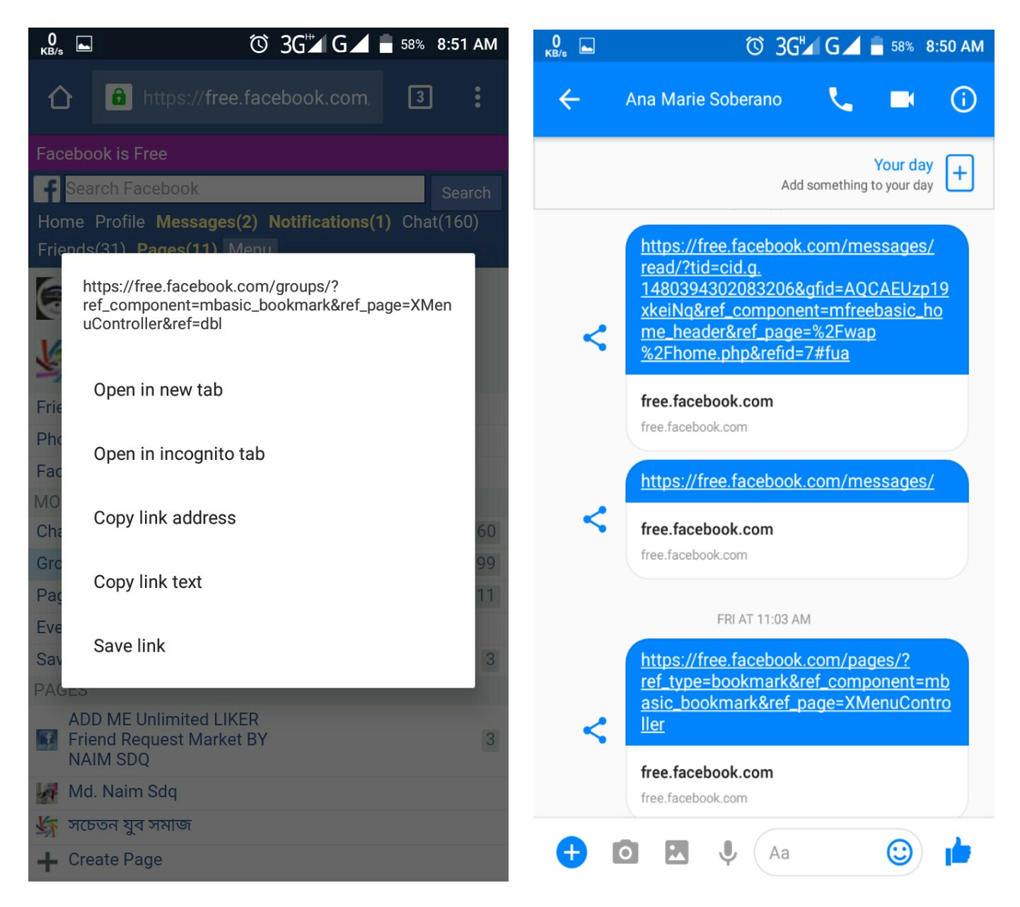 লিঙ্কটি কপি করার পর আপনার কোন বন্ধুর বা আপনার ফেক একাউন্ট এ পাঠিয়ে দিন। যেমন আমি Philippines এর এক ফ্রেন্ড কে পাঠিয়েছি।
