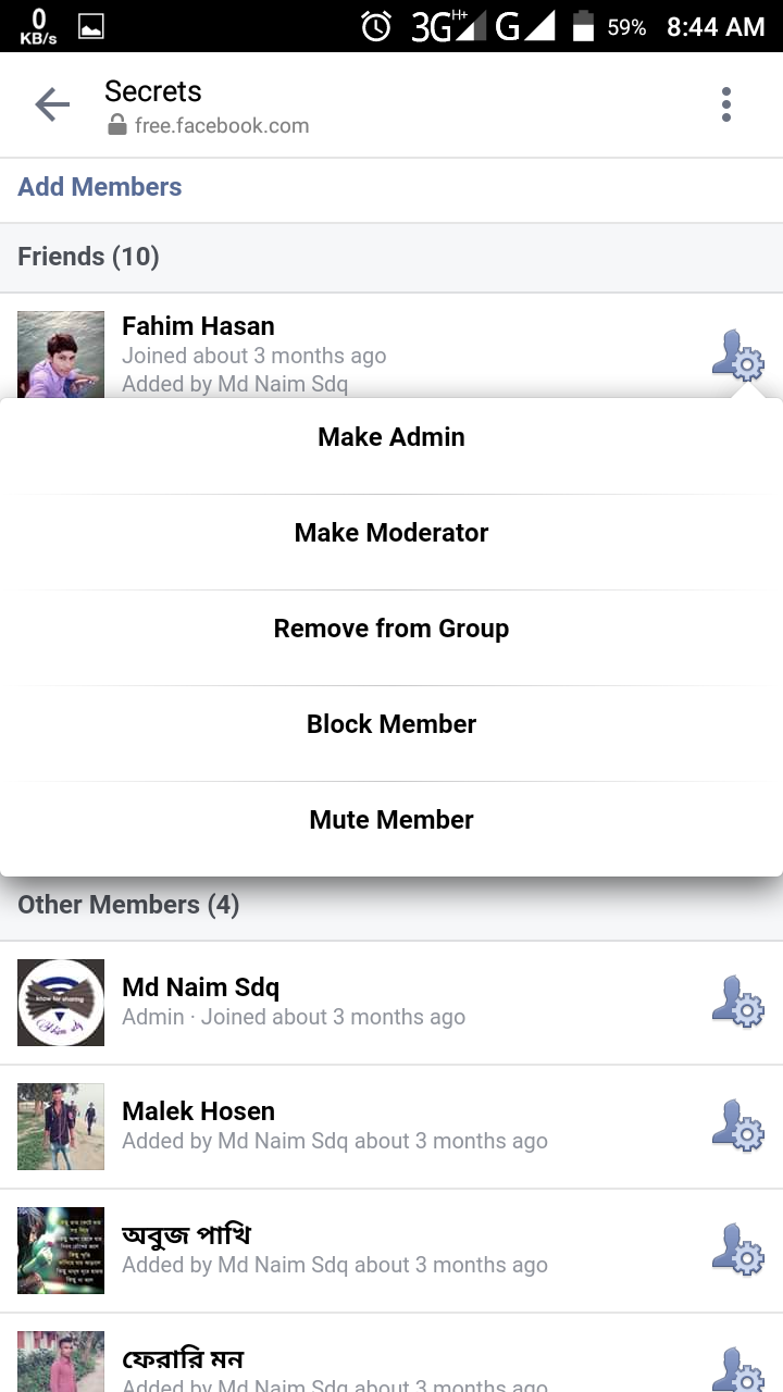 গ্রুপ এর এডমিন মোড দেখুন, প্রফাইলের পাশে সেটিংস এর মত আইকনে ক্লিক করুন।